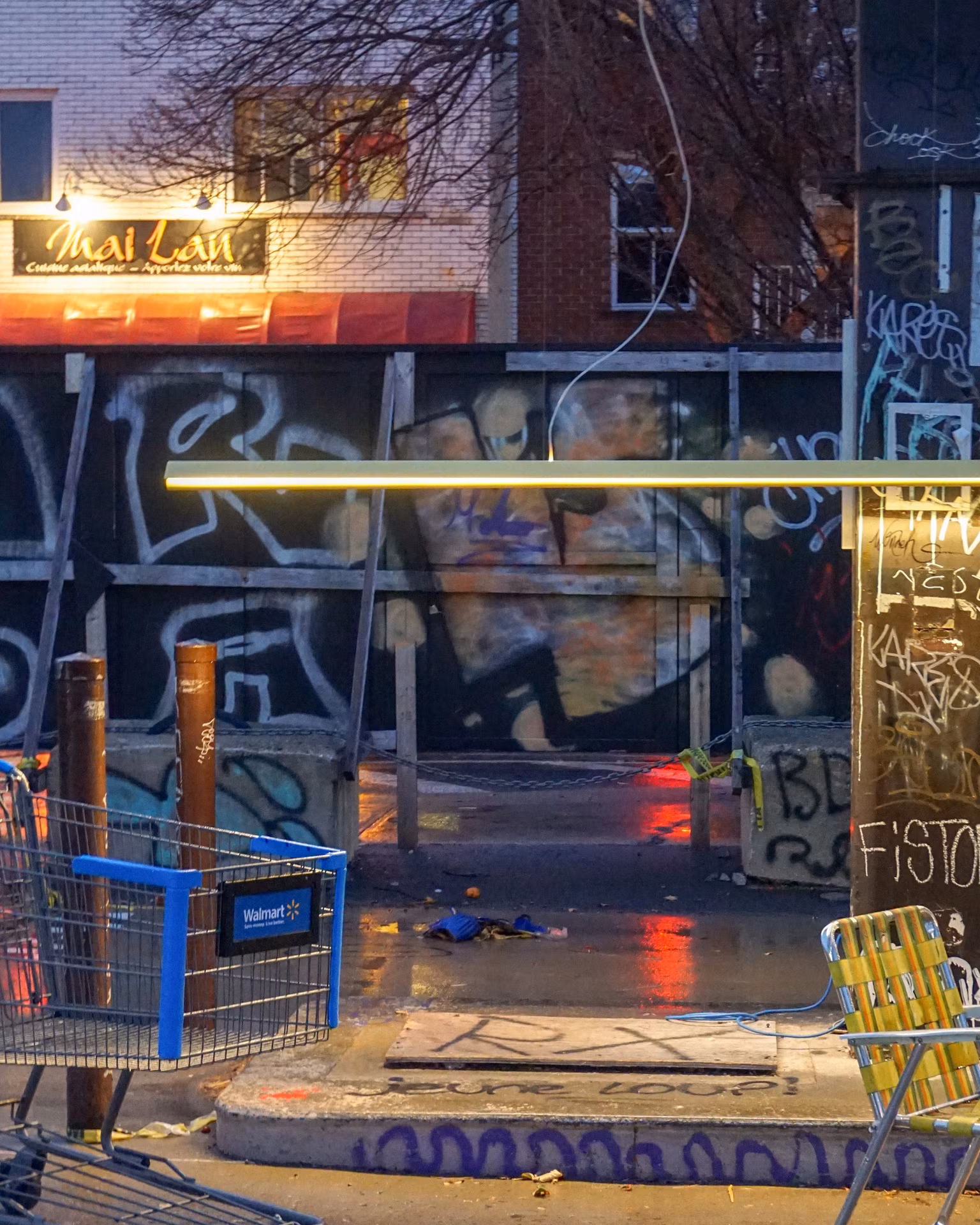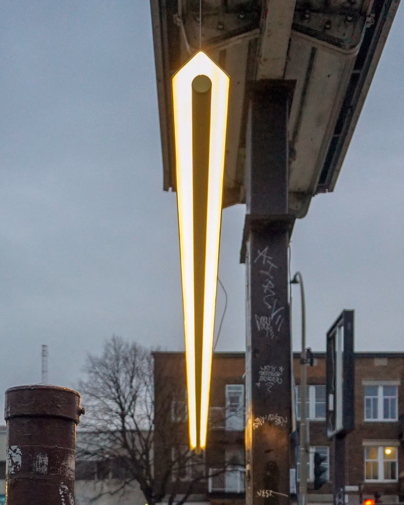 Malgré le froid et la pluie, notre luminaire en aluminium a illuminé, le temps d’un week-end, une ancienne station-service du quartier Rosemont. Dans ce décor brut et inattendu, Flot a révélé toute sa légèreté et sa puissance silencieuse.